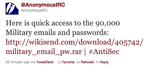 Anonymous filtra 90.000 cuentas de correo de militares de EEUU